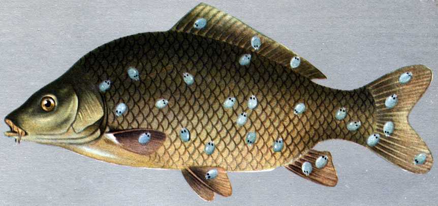 Тяжелая инвазия карпоеда на коже карпа кои (news.ifas.ufl.edu/) увеличивается по клику Тяжелая инвазия карпоеда на коже карпа кои (news.ifas.ufl.edu/) увеличивается по клику