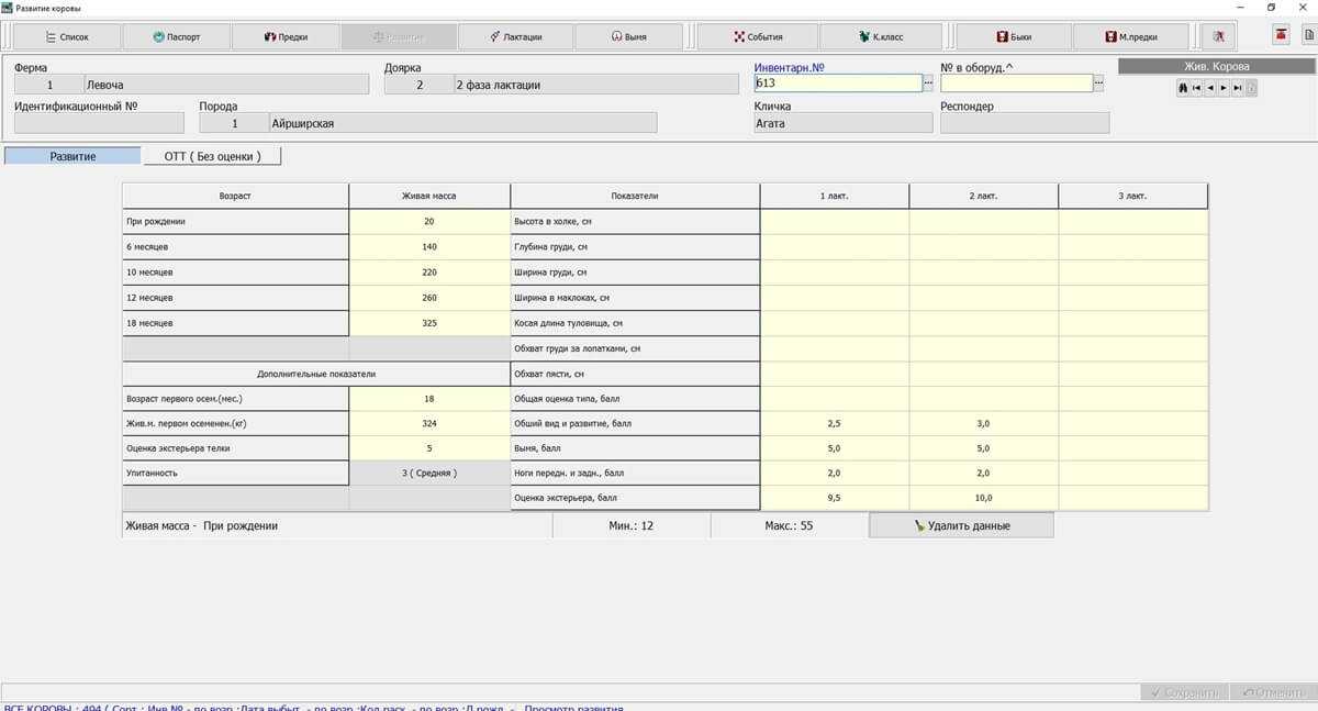 2. с ОТТ животного (оценка типа телосложения) в новой версии программы 5.50 .Но об этом пункте чуть ниже.
