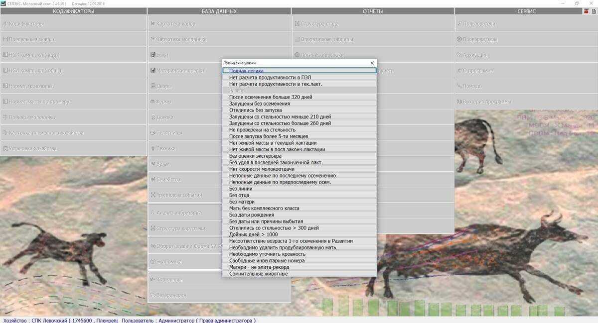 Должен также отметить, что программа сама отслеживает все события и даты контроля. Допустим, вы забыли измерить живую массу коровы через 3 месяца после отела. Зайдя в раздел «Отчеты», а далее в «Логические увязки», программа сама напомнит вам об этом, достаточно лишь нажатие одной кнопки.