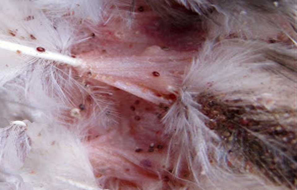 Другие паразиты — клещи тоже нападают на птицу, прокусывают кожу, сосут кровь, могут впрыснуть ядовитую слюну.