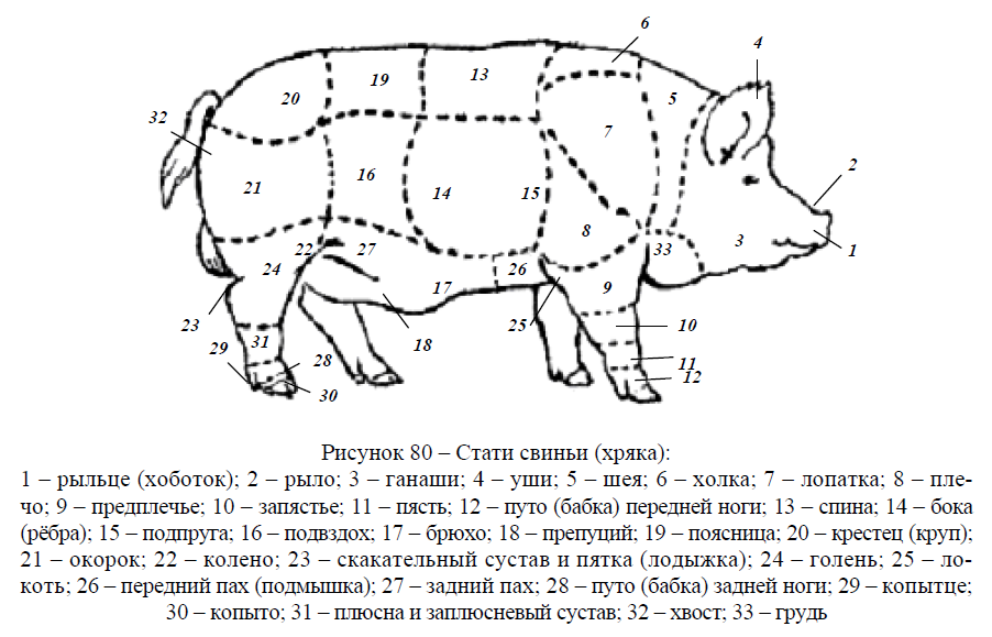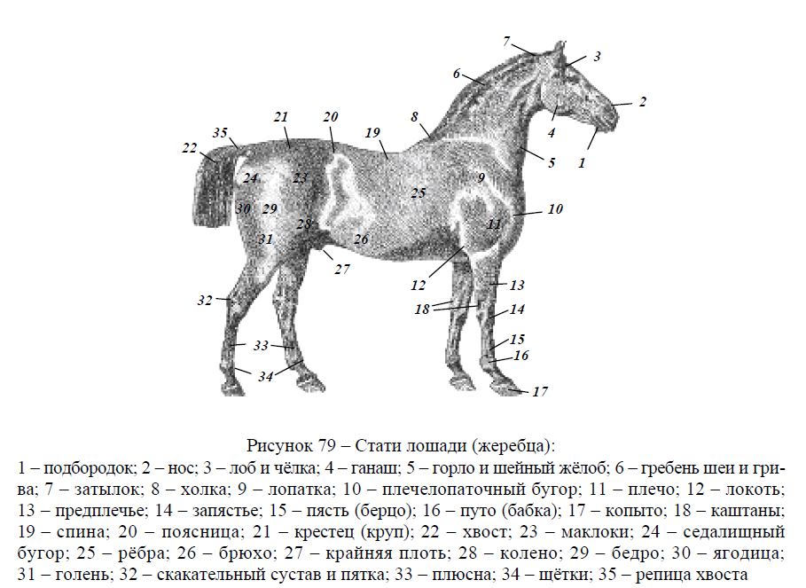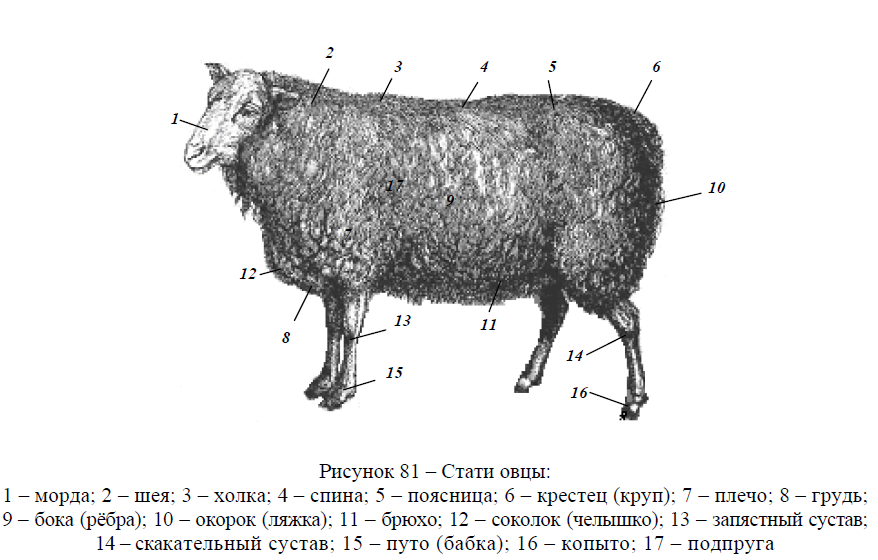 Стать – отдельная часть тела животного, а экстерьер, в целом, есть совокупность статей. На рисунках 78 – 82 приведены стати основных сельскохозяйственных животных.