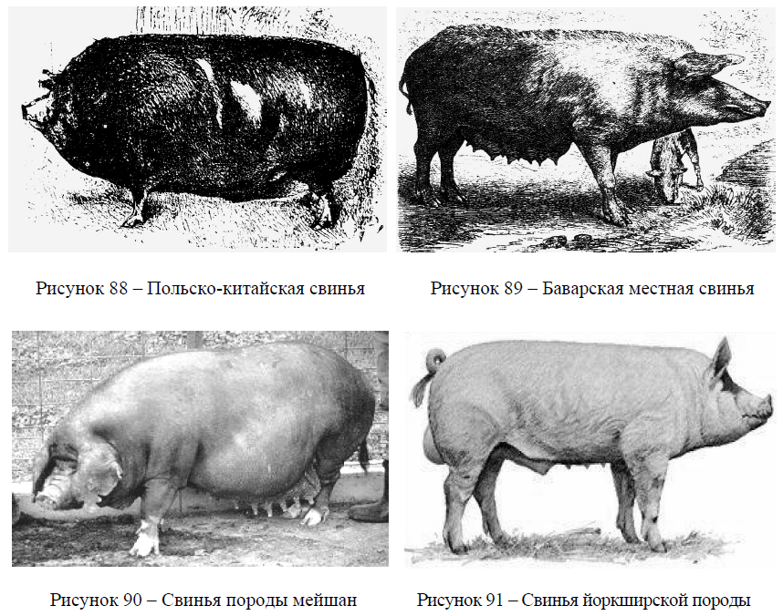 Свиньи, имеющие следующие пороки телосложения, не подлежат оценке по экстерьеру и выбраковываются из племенного стада: курносость, или мопсовидность (рисунок 83 в), криворылость, неправильный прикус, сильная Х-образность передних конечностей, резкий перехват груди за лопатками (рисунок 84 а) или в пояснице, провислая спина (рисунок 84 б), менее 12 сосков, кратерные (впалые) соски (рисунок 85 г).
