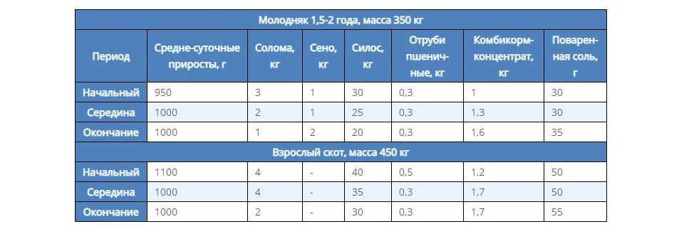 Рацион кормления коров для получения мяса составляется из расчета прироста одного килограмма живой массы за время всего выращивания или же периода откорма