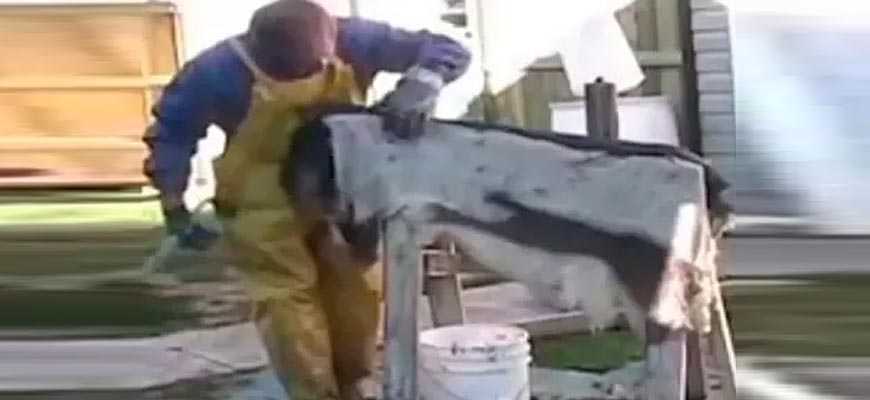 Прежде чем выделывать шкуру, ее нужно правильно снять и отсортировать. Перед тем, как забить животное, его не кормят в течение суток и не дают воду в последние 3 часа.
