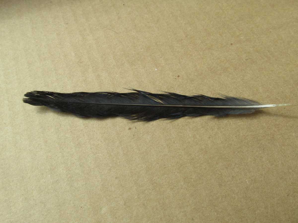 Перо голубой сойки изнаночной стороной вверх выглядит коричневато-черным.