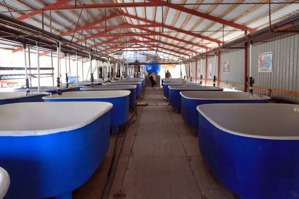Выращивают ее на участке более 30 квадратных метров. Он должен находиться вдалеке от дорог и отапливаться в зимний период. В помещении устанавливают около 7 бассейнов. Вначале мальков помещают в небольшой бассейн диаметром в пару метров. Его глубина не больше метра. Так как рыба растет с разной скоростью, их регулярно сортируют по другим бассейнам.
