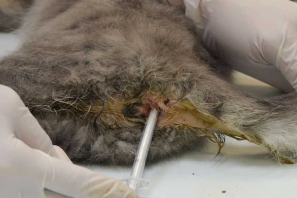 - В период после операции кошке проблематично достать до ануса и очистить его, поэтому регулярно обрабатывают поврежденную область антисептическими растворами.