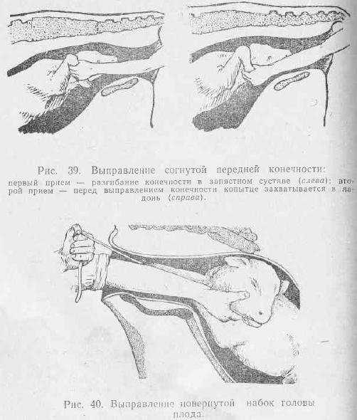 У коров до 3 суток, с последующим благополучным завершением плодоношения. Может произойти частичное ущемление плодных оболочек шейкой матки либо неполный аборт (когда двойня). Иногда происходит нарушение плацентарной связи и в дальнейшем аборт и изгнанием недоноска, неизмененного выкидыша, мумификация или мацерация плода. Прогноз сомнительный. Лечение: животных переводят в изолированное помещение с мягкой постилкой и покатым полом. На крестец и поясницу – горячие припарки из сенной трухи. Через рот коровам алкоголь, кобылам хлоралгидрат в наркотических дозах, интравенозные инъекции и клизмы противопоказаны. Если при прощупывании через прямую кишку плод живой – прекращают любые исследования, если мертвый – надо удалять.