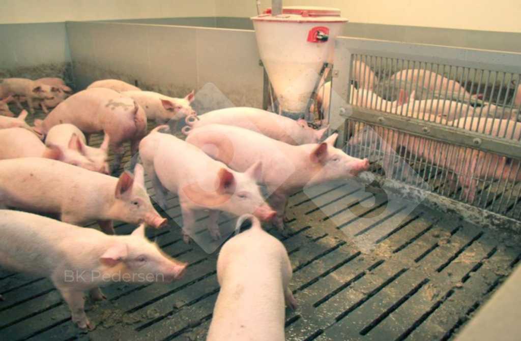Датский опыт подсказывает, что, как и на доращивании, станок должен быть прямоугольным, с соотношением длины к ширине 2:1, предоставляющим поросятам достаточно места для отдыха, питания, дефекации, а также социальной активности. Учитывая, что длина 100-кг свиньи может достигать 130 см, ширина станка должна быть минимум 2,2 м. Датские станки обычно имеют ширину 2,2 – 2,6 м, а глубину 4,5 – 6,0 м, независимо от применяемой системы кормления.
