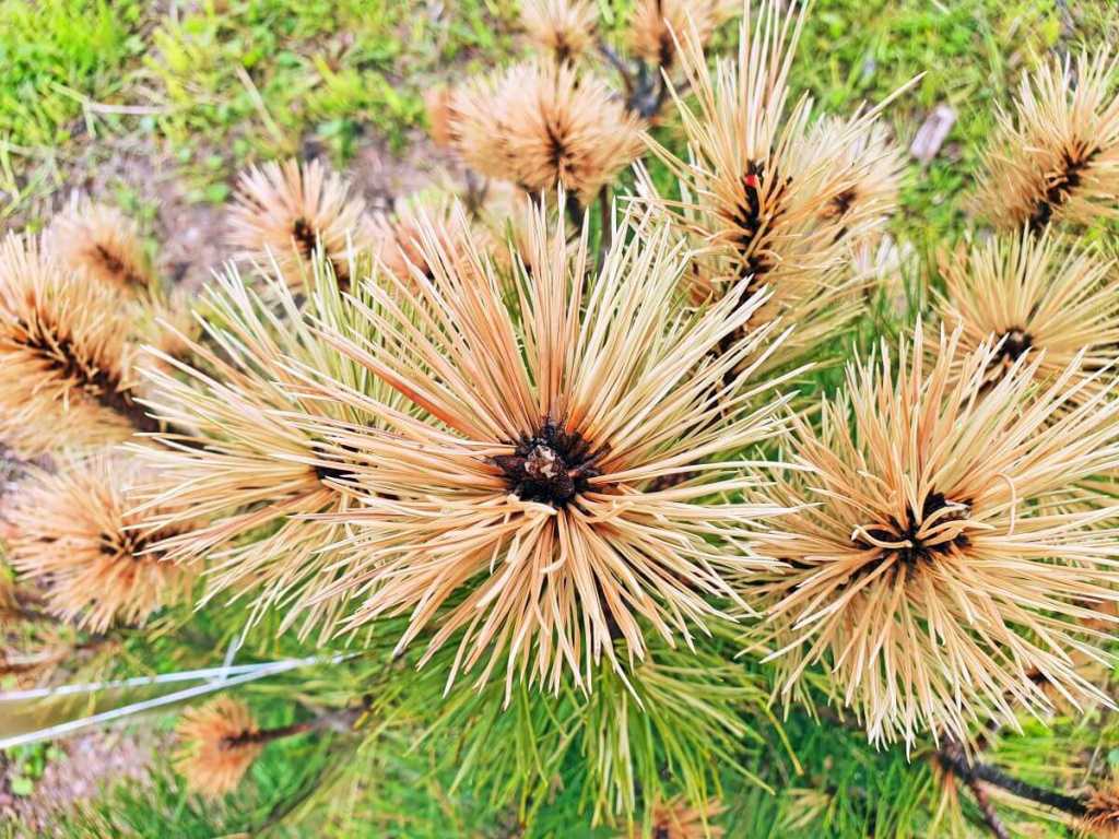 - Чтобы споры не сохранились в земле под сосной, ее надо будет перекопать. Если есть возможность убрать опавшие иглы – уберите и сожгите.