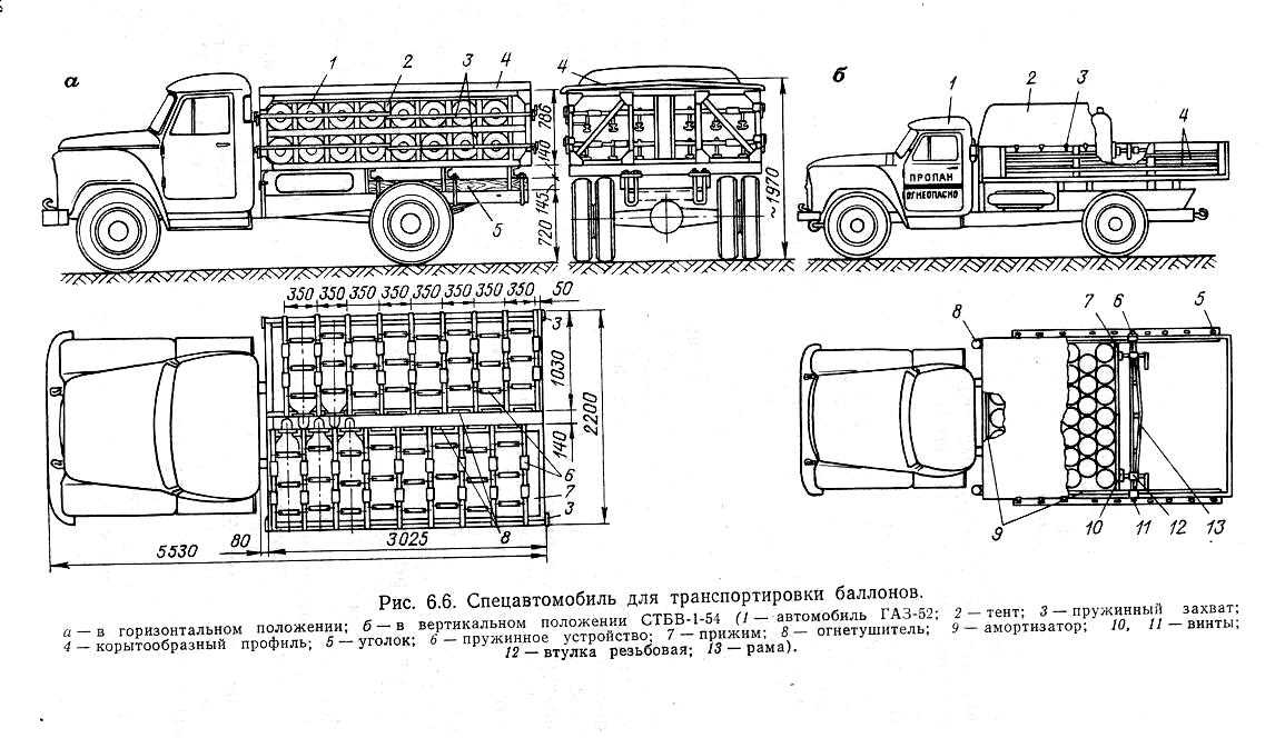 Для иных целей применяются машины, которые относятся к специальному транспорту. То есть они имеют соответствующее оснащение и оборудование. В основном это грузовики, на которых стоят клетки под загрузку баллонов. Каждое гнездо имеет металлический каркас, но дополняется резиновыми амортизаторами, что соответствует ГОСТу.