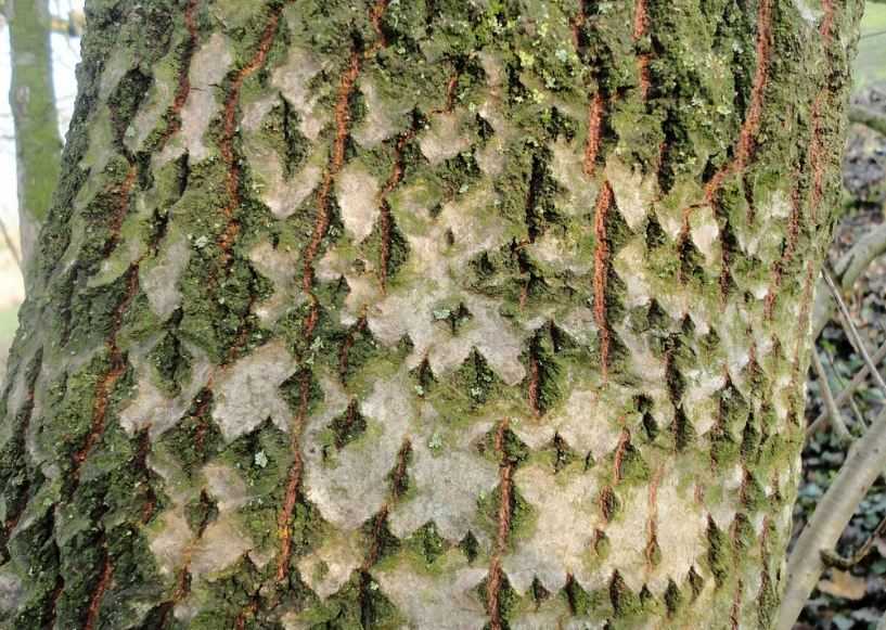 Кора у деревьев помладше, как правило, намного более гладкая, а с возрастом приобретает многочисленные трещины, идущие вверх от прикорневой зоны.
