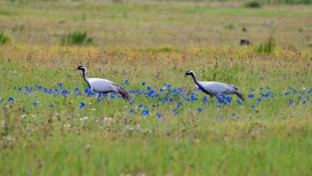 Журавль-красавка — ему присвоен статус восстанавливающийся вид. Лимитирующие факторы: освоение земель, химизация земледелия, охота и нападения пастушьих собак.