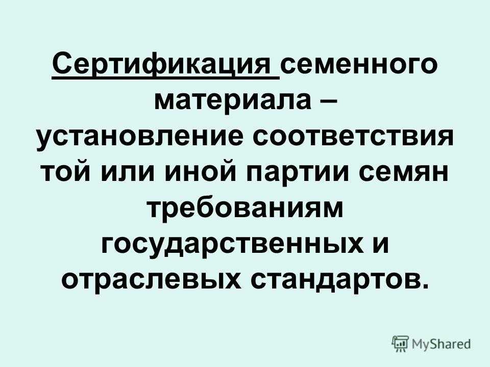 Сертификация семенного материала – установление соответствия той или иной партии семян требованиям государственных и отраслевых стандартов.