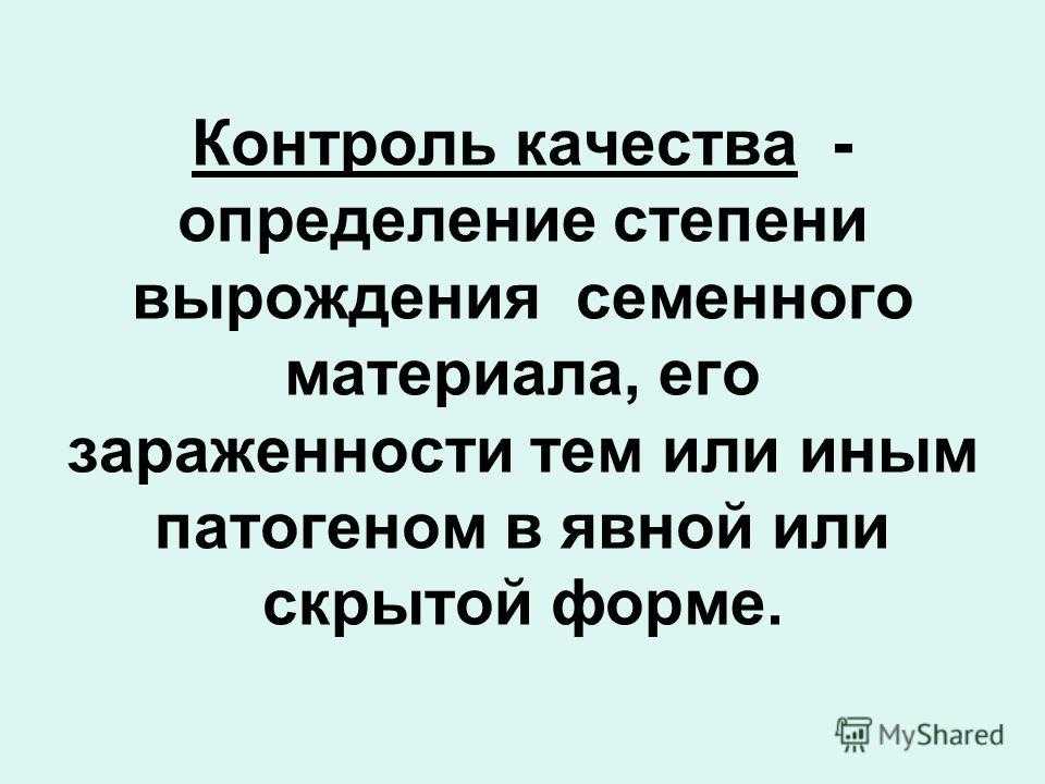 Контроль качества — определение степени вырождения семенного материала, его зараженности тем или иным патогеном в явной или скрытой форме.