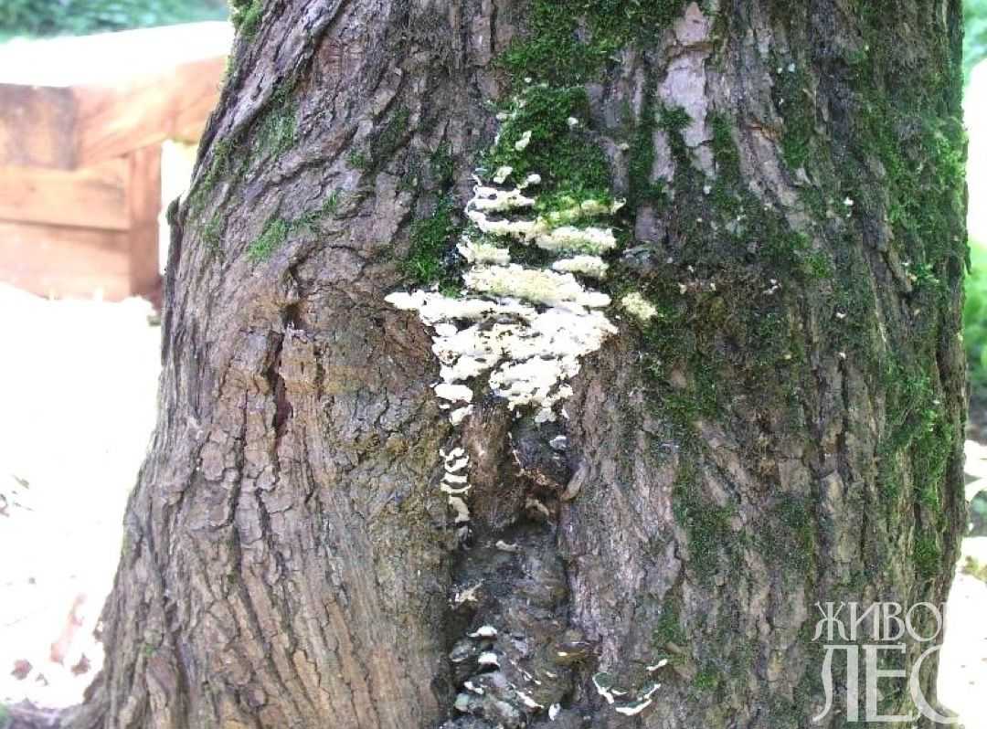 - В процессе гибели кроны, на коре выступает подобный грибок.