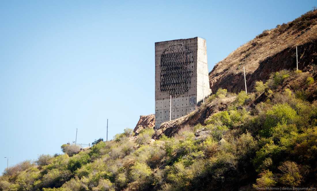 По пути встретился необычный «арматурный портрет» Ленина. В Узбекистане в 90-е годы сносили все символы советской эпохи, здесь же видно, что лицо из бетона Ильичу полностью отбили, но каркас все равно сохранил знакомые очертания.