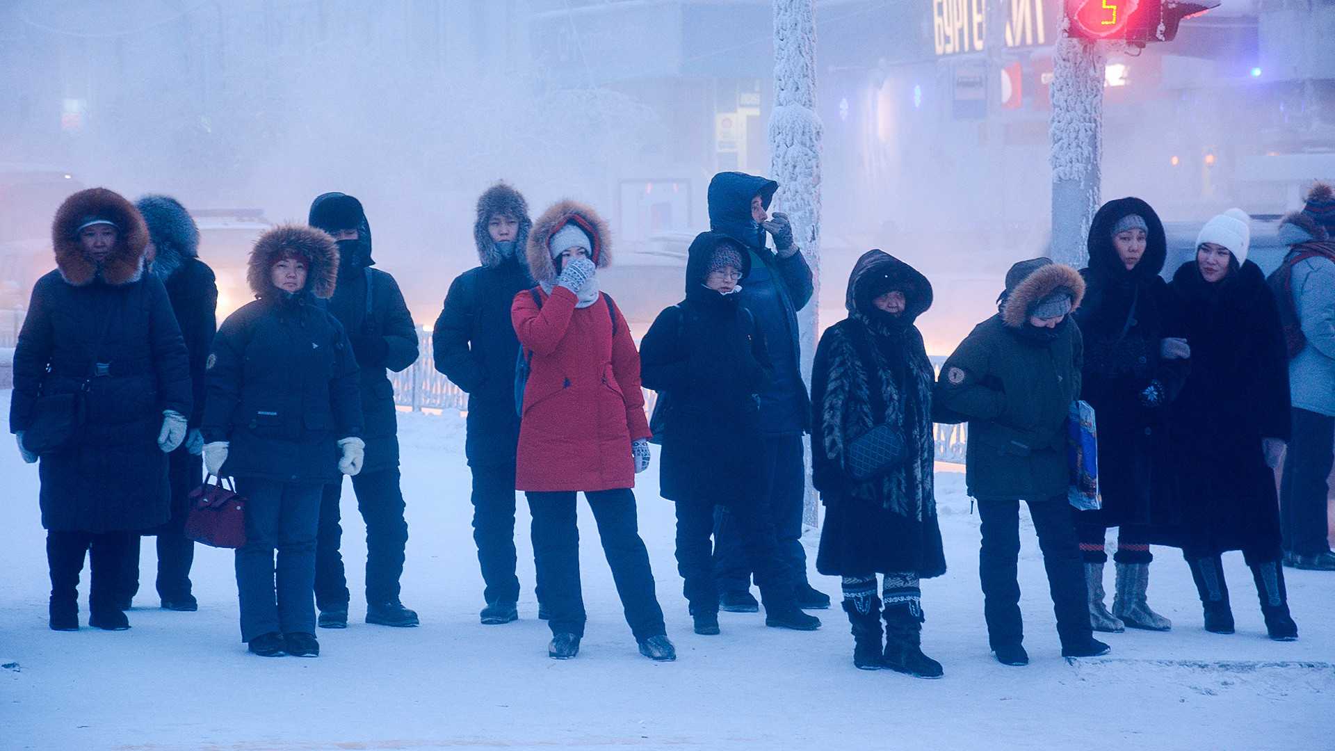 Местные жители на одной из улиц города Якутска. Температура опустилась до отметки минус 47 градусов по Цельсию.