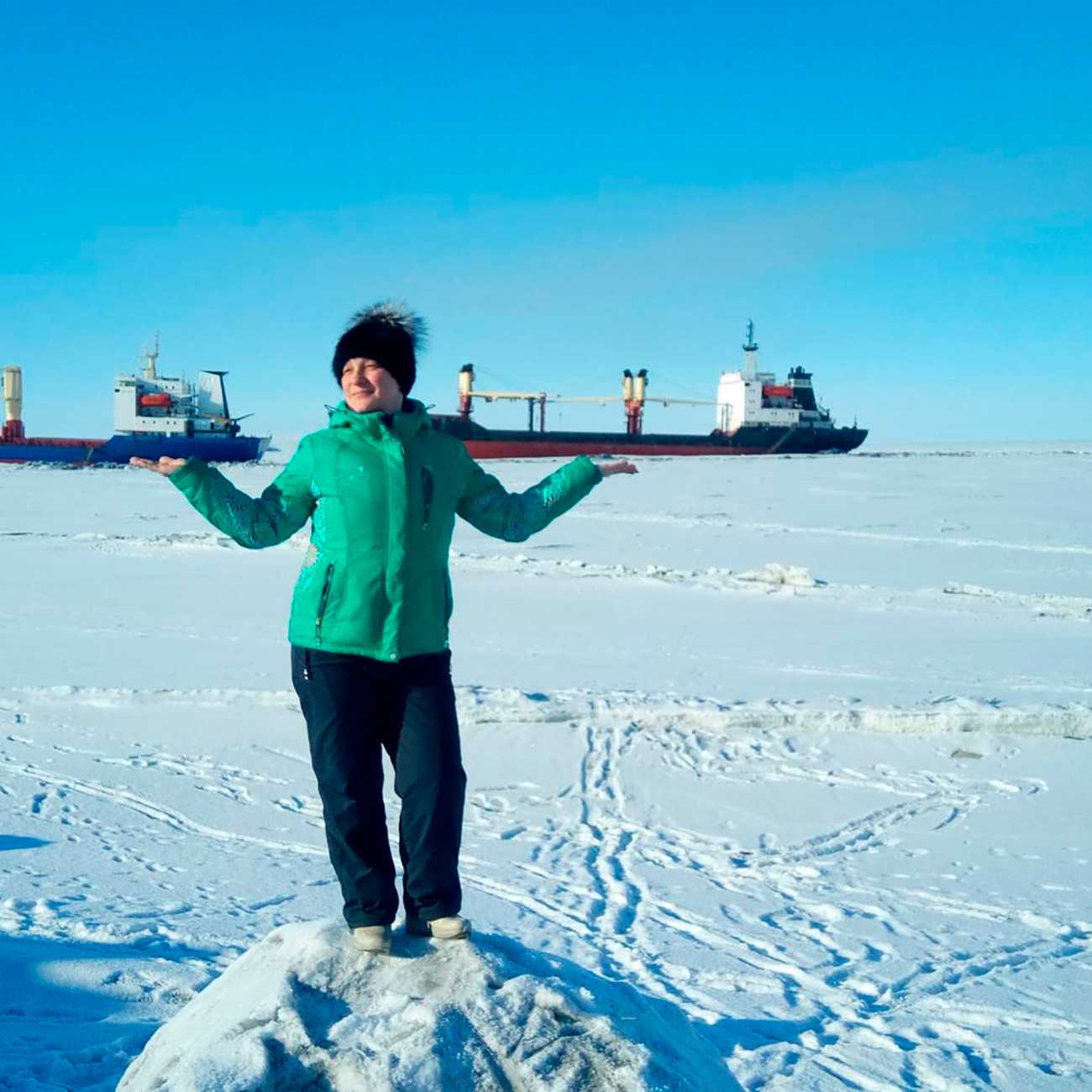 «В морозы обязательно надеваем шарф и снуд, иначе лицо будет обморожено, – говорит Евгения, которая несколько лет назад переехала в Певек из Владивостока. – Закрываем лицо до самых глаз». И несмотря на сильный ветер и мороз, девушки хотят выглядеть красиво и делают макияж. «Конечно, все замерзает, а если еще глаза слезятся, то вообще провал. Но куда деваться, подправляем уже на месте», – признается Евгения.