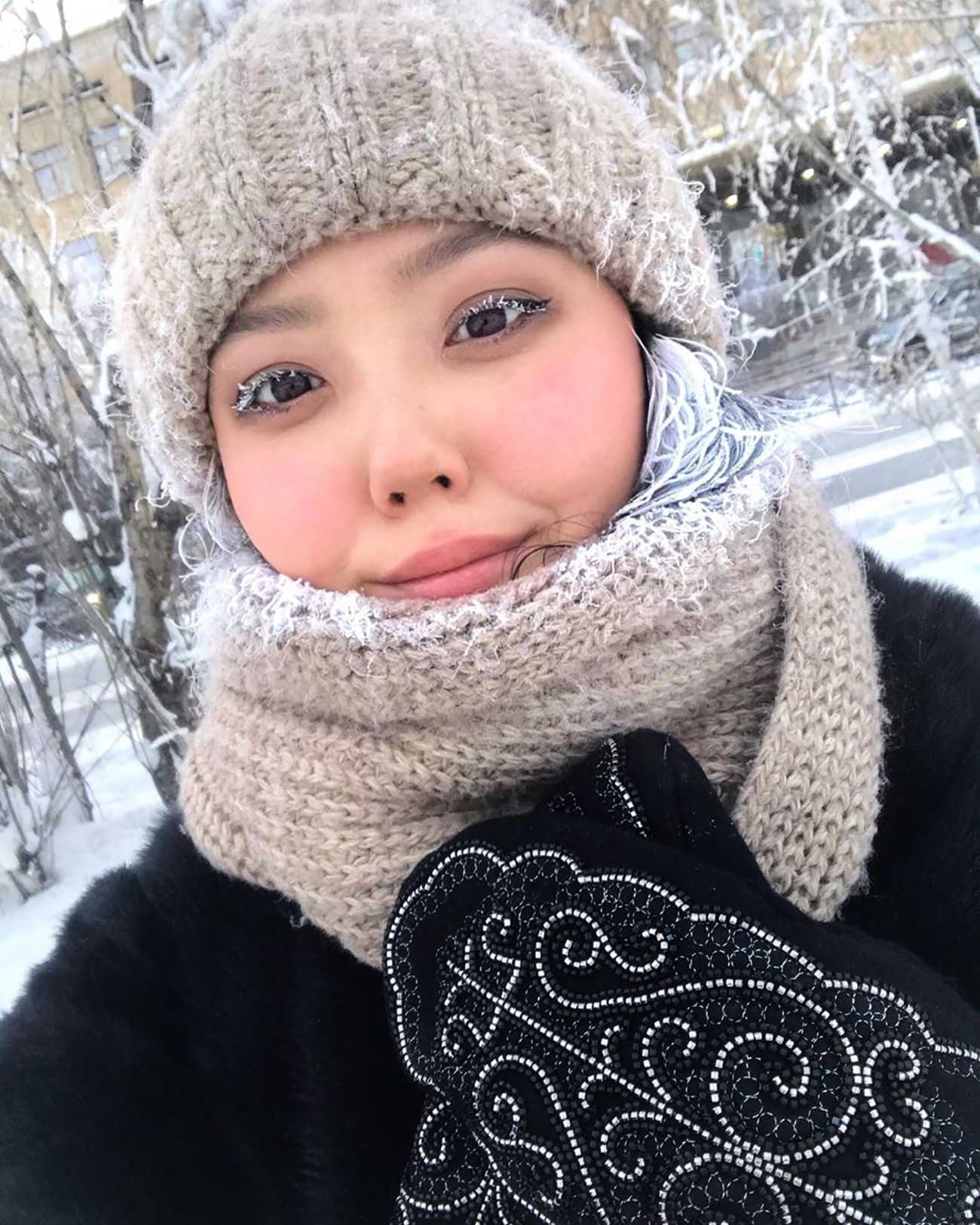 Кроме головных уборов, многие местные жители еще закрывают лицо – иначе не избежать знаменитого якутского мейка с заледеневшими ресницами. Он появляется минут за 10 на морозе.