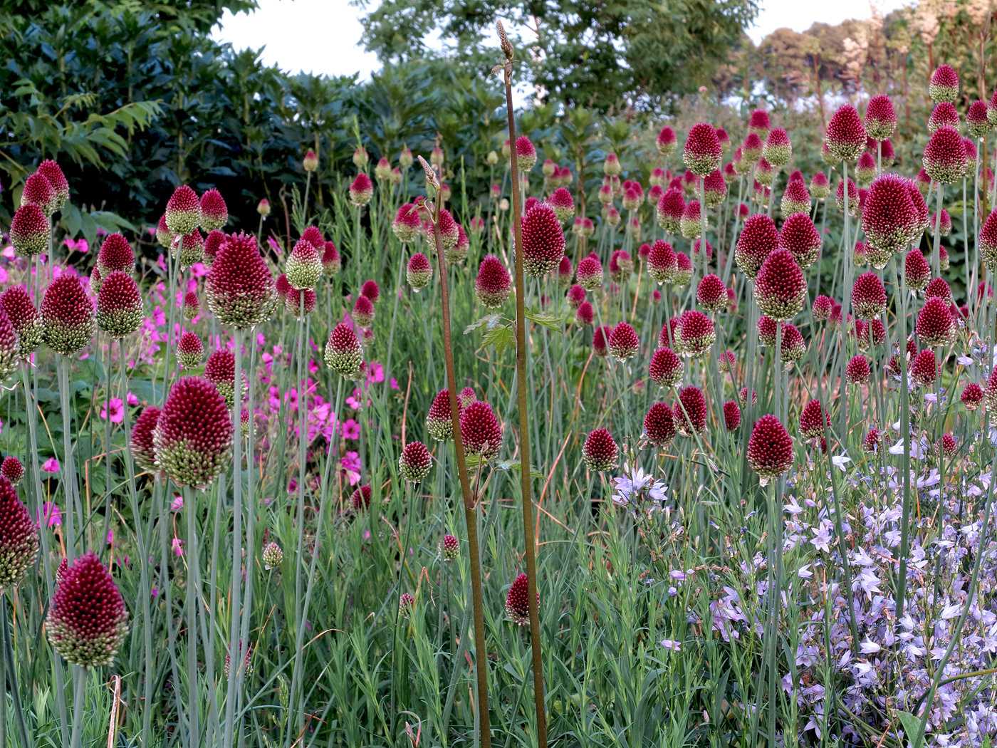 Среднерослое растение (до 60 см) с необычной овальной головкой. Розовые и фиолетовые цветы появляются в июле и остаются красивыми в течение месяца.