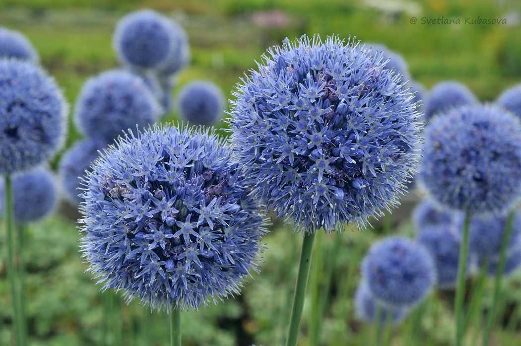 Считается самым заметным из-за плотных 7-сантиметровых зонтиков. Блестящее голубое соцветие состоит из 250 маленьких колокольчиков. Его высота составляет 80 см.