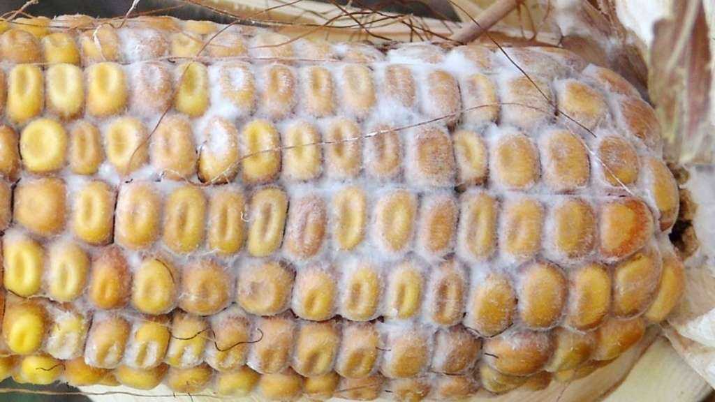 При влажности зерна 14% в початках развитие плесени не обнаруживается, при 17% плесень начинает развиваться, а при 19% развивается интенсивно. Сильное плесневение початков и зерна наблюдается при плохой вентиляции хранилищ кукурузы, а также при попадании в них дождя и снега. Особенно быстро плесневеют зерновки, у которых семенная оболочка повреждена насекомыми, птицами, мышами или поражена возбудителями других болезней. При сильном плесневении в буртах початки нередко сгнивают полностью.