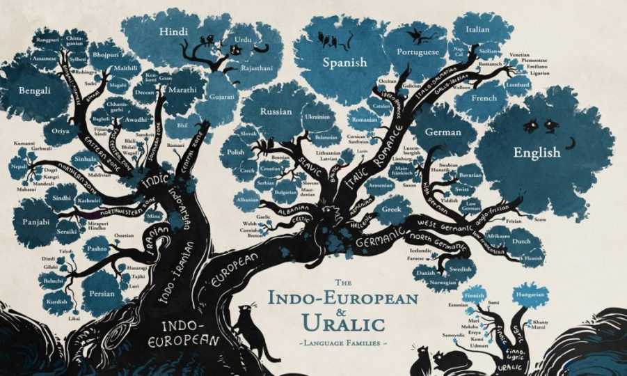 Похожие деревья образуют и другие объекты, возникшие в результате эволюции. Например, человеческие языки: