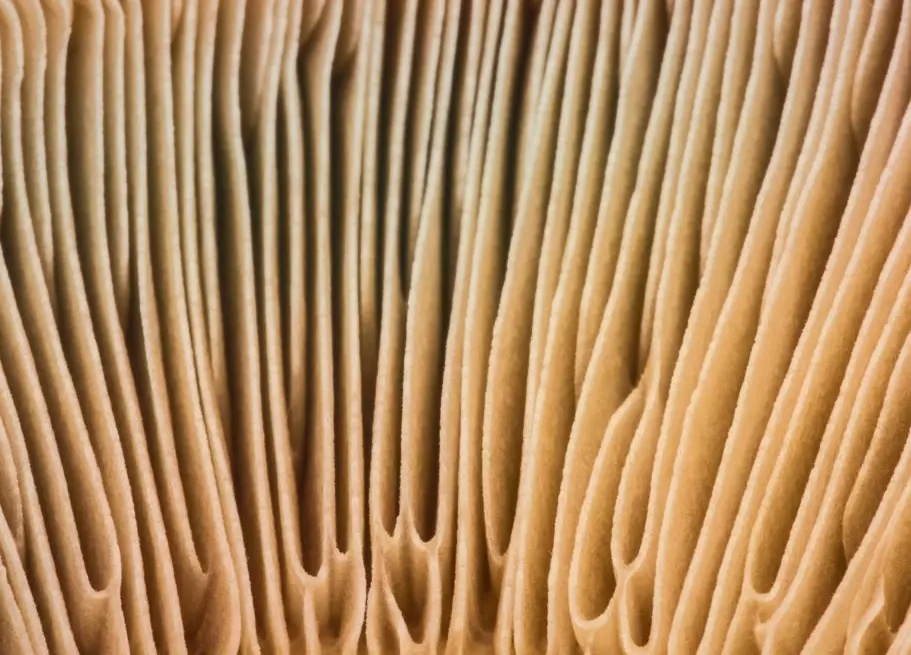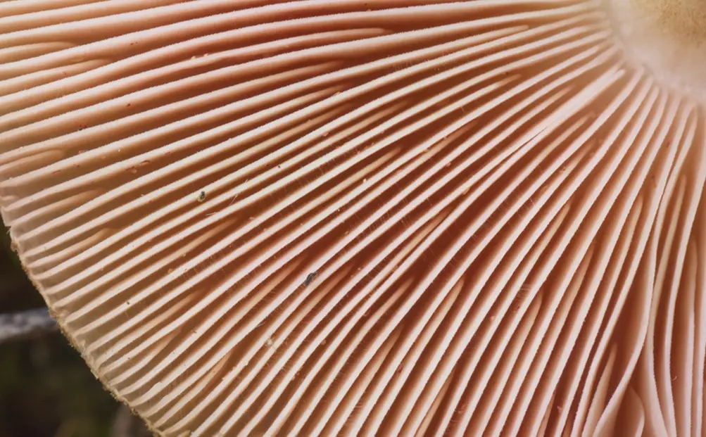 У большинства пластинчатых грибов плодовые тела однолетние и мясистые, а гименофор расположен на нижней части шляпки и выглядит, как множество радиальных полосок – пластинок, идущих от центра к краям шляпки. Они могут выглядеть совершенно по — разному – быть очень тоненькими, рыхлыми и частыми, или наоборот жесткими и редко расставленными, могут быть окрашенными в тон остального плодового тела, или иметь совершенно отличающуюся от него окраску – вариантов в природе существует огромное множество.