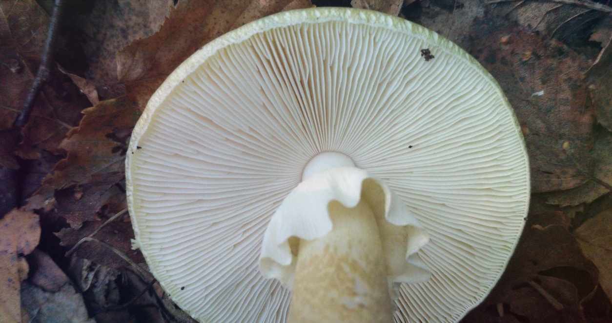 Её пластинчатый гименофор отличается устойчиво – белой окраской с небольшим зеленоватым отливом, не меняющейся по мере старения плодового тела, что служит одним из опознавательных признаков этого смертельно ядовитого лесного жителя.
