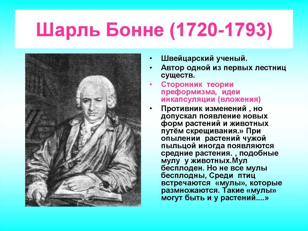 идеями между обоими направлениями. В этих условиях прозвучал (и достаточно мощно) голос в пользу эпигенеза… Речь идет о Каспаре Фридрихе Вольфе (1734-1794), работавшем сначала в Германии, а затем в России. Факты, полученные им с помощью микроскопической техники при изучении развития цыпленка были, хотя и более детальными, но по сути своей не отличались существенно от полученных Мальпиги, а вот трактовка была противоположной (цит. по Электронная библиотека по философии — http://filosof.historic.ru). «… К.Ф. Вольф произвел в 1759 г. первое нападение на теорию постоянства видов, провозгласив учение об эволюции» (Ф. Энгельс «Диалектика природы», 1969, с. 14-15).