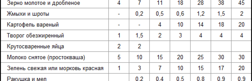 Осенью добавляют еще пшеничные отруби, примерно 10 граммов, а вот весной их практически не дают, в порции от силы 1 грамм этой составляющей. Норма – примерно 150 граммов.