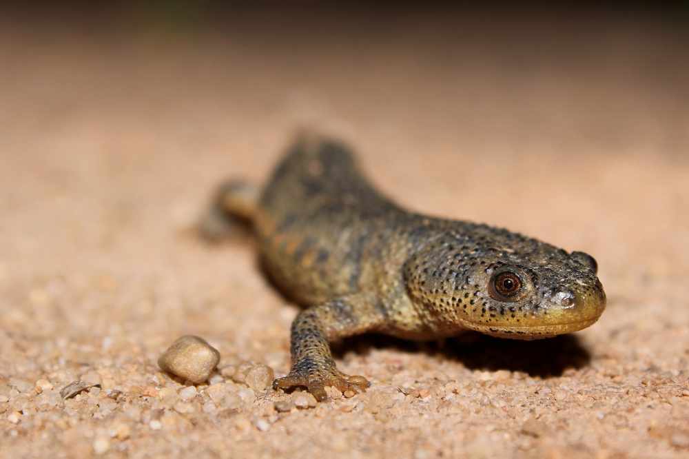Менее распространен еще один житель болотистой местности — тритон. Внешне тритоны напоминают ящериц, но обладают гладкой и влажной кожей и вертикально плоским хвостом. Туловище имеет веретенообразное строение и удлиненную форму. Голова переходит в тело, а оно в свою очередь в хвост.