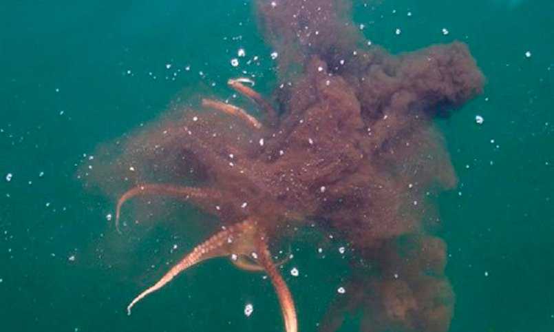 Кальмар может выпустить струю чернил для отвлекающего маневра при опасности