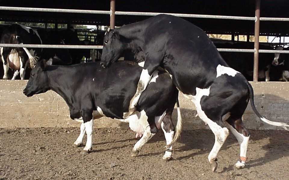 Половая охота начинается еще во время того, когда наблюдается течка. Это говорит о том, что организм животного подготовлен к осеменению. Основной признак – корова не двигается, когда на нее запрыгивает бык, поскольку рефлекс на время зачатия отключается.
