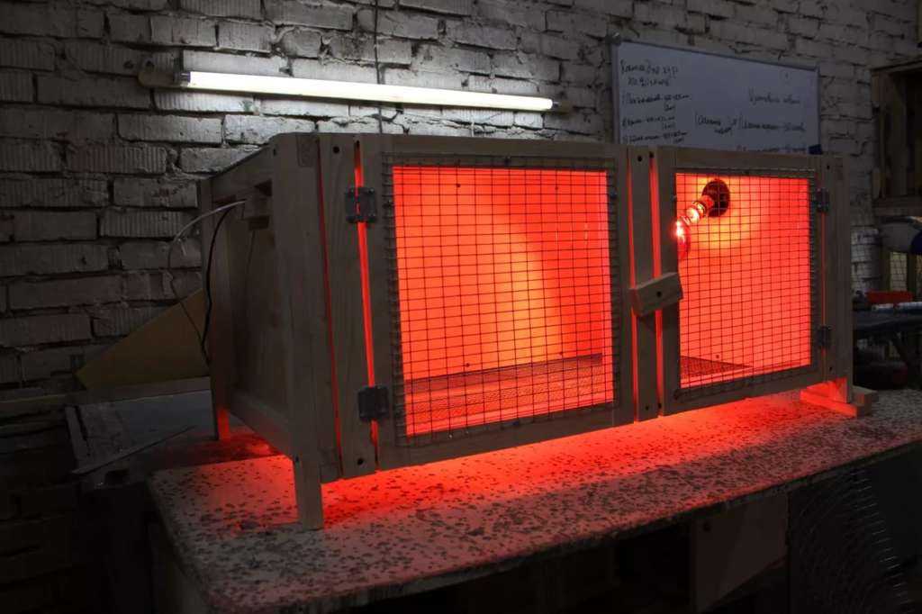 Чтобы цыплята комфортно себя чувствовали, необходимо обустроить правильную систему освещения и обогрева, установив лампу с инфракрасным излучением или обычную мощностью 60 Вт и инфракрасную отопительную пленку.
