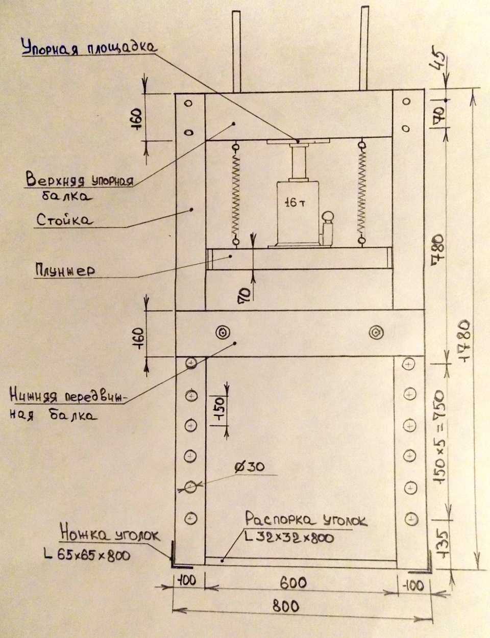 Металлический вариант ручного пресса изготавливается по аналогичной схеме, с той лишь разницей, что корпус сваривается из стальных листов.