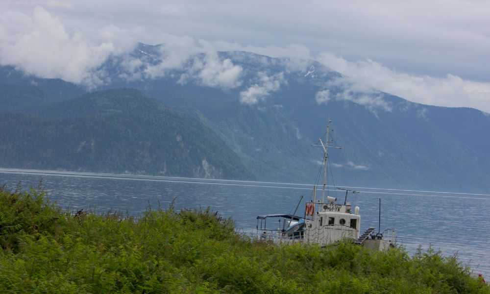Это место на Телецком озере называют «территорией особого покоя». Камгинский залив относительно всего Телецкого озера неглубокий, в нем хорошо прогревается вода, это главное место нереста телецкой рыбы. Залив строго охраняется особым режимом Алтайского заповедника, его посещение категорически запрещено. Но им можно полюбоваться издалека — и сделать самые красивые панорамные снимки с теплохода «Пионер Алтая».