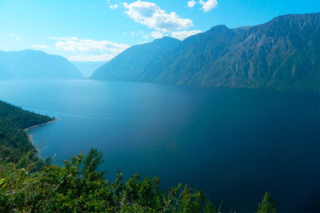 Довольно часто его сравнивают с Байкалом и даже называют его меньшим братом, что совершенно неудивительно. Ведь его размеры действительно впечатляют, его длина 77,8км, ширина 2,9-5,2км, а глубина 325м. По величине, это второе хранилище после знаменитого Байкала. Втекает в озеро около 70 речек и рек, а вот вытекает всего одна.