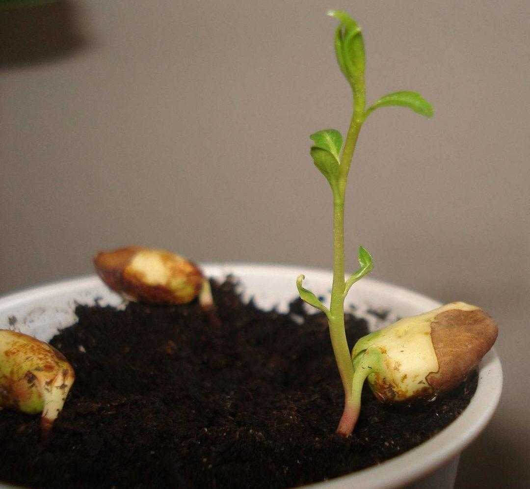 Всходы появляются не раньше, чем через 1,5 месяца. После появления ростков уход осуществляется, как и за любым комнатным растением. По мере роста миндаль пересаживают в емкость большего размера.