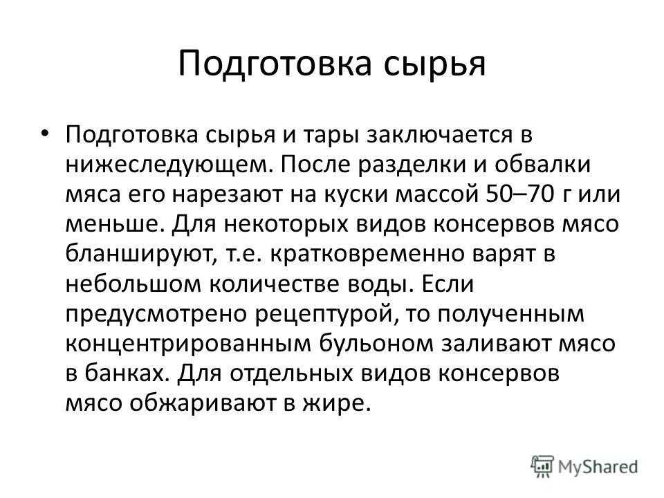 Требования к сырью, применяемого в производстве мясных баночных консервов 8