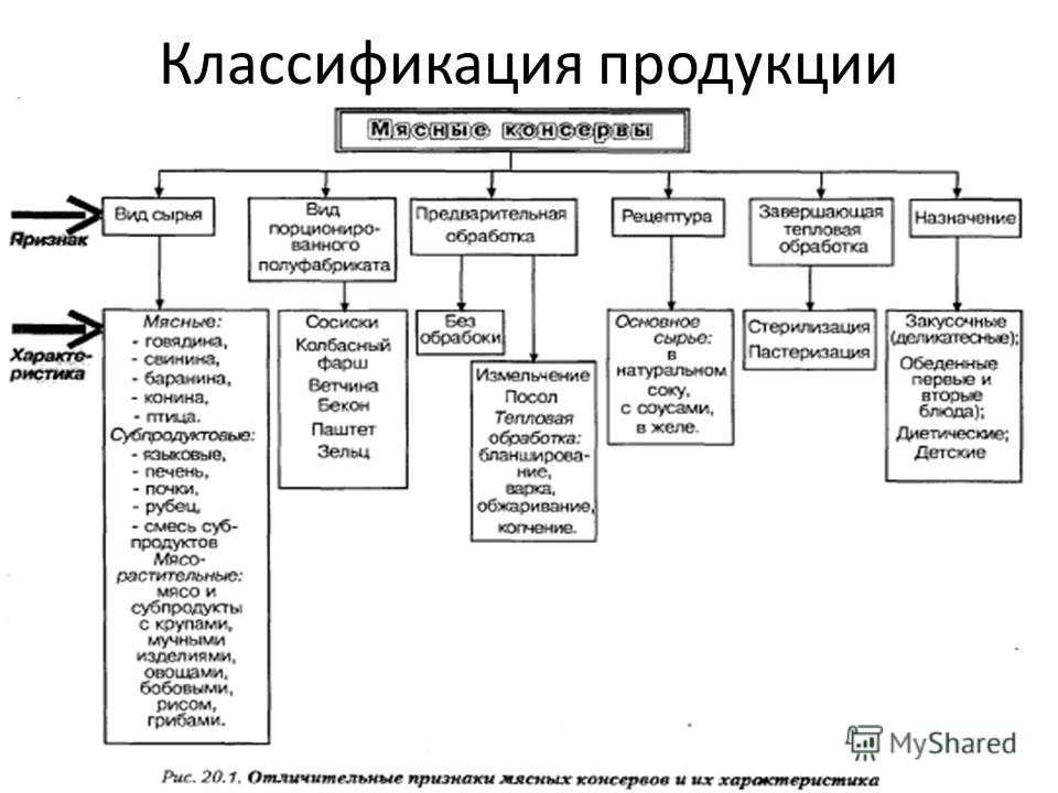 Ассортимент мясных консервов можно подразделить по виду используемого для производства сырья: