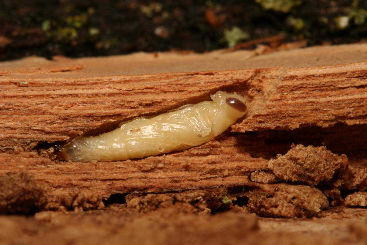 Когда из яйца выходит личинка, она вгрызается в кору и проделывает в ней ходы, забитые темной буровой мукой. У каждой личинки имеется собственный ход. Если деревья слабые, то ходы расходятся в разные стороны, а если сильные, то они концентрируются и представляют собой овальный клубок.