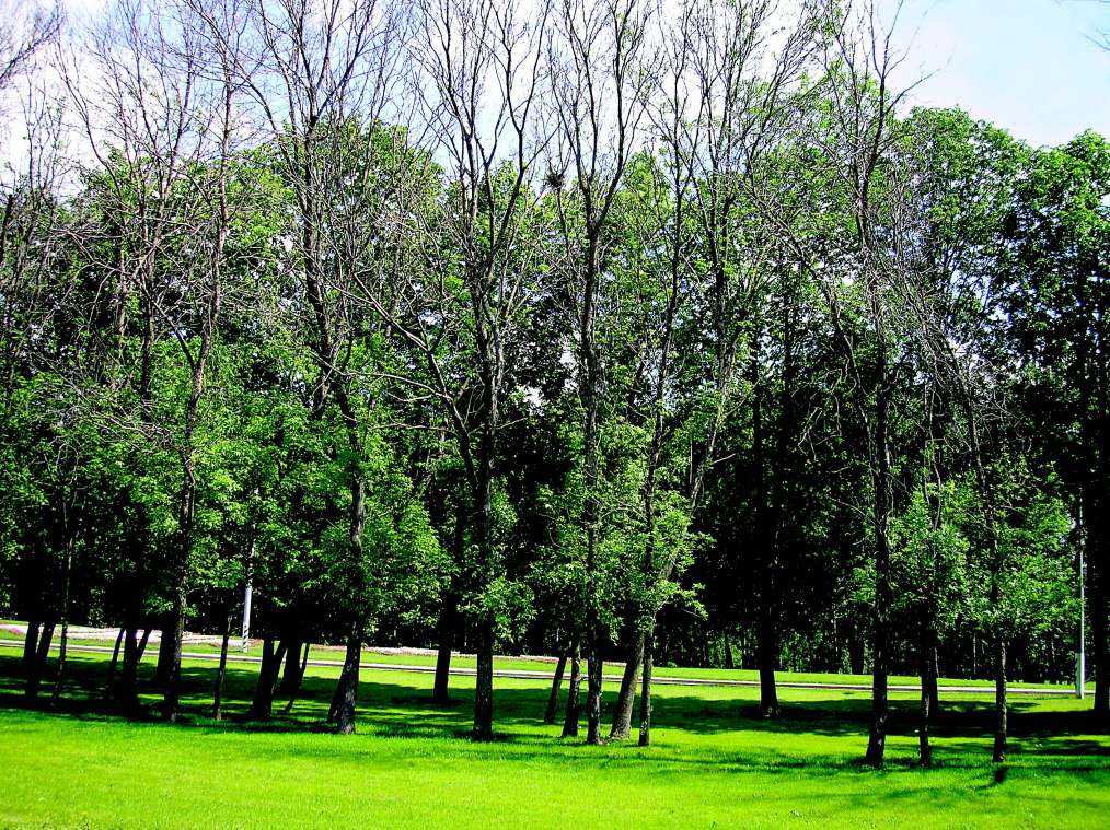 Общий вид деревьев ясеня в очаге златки