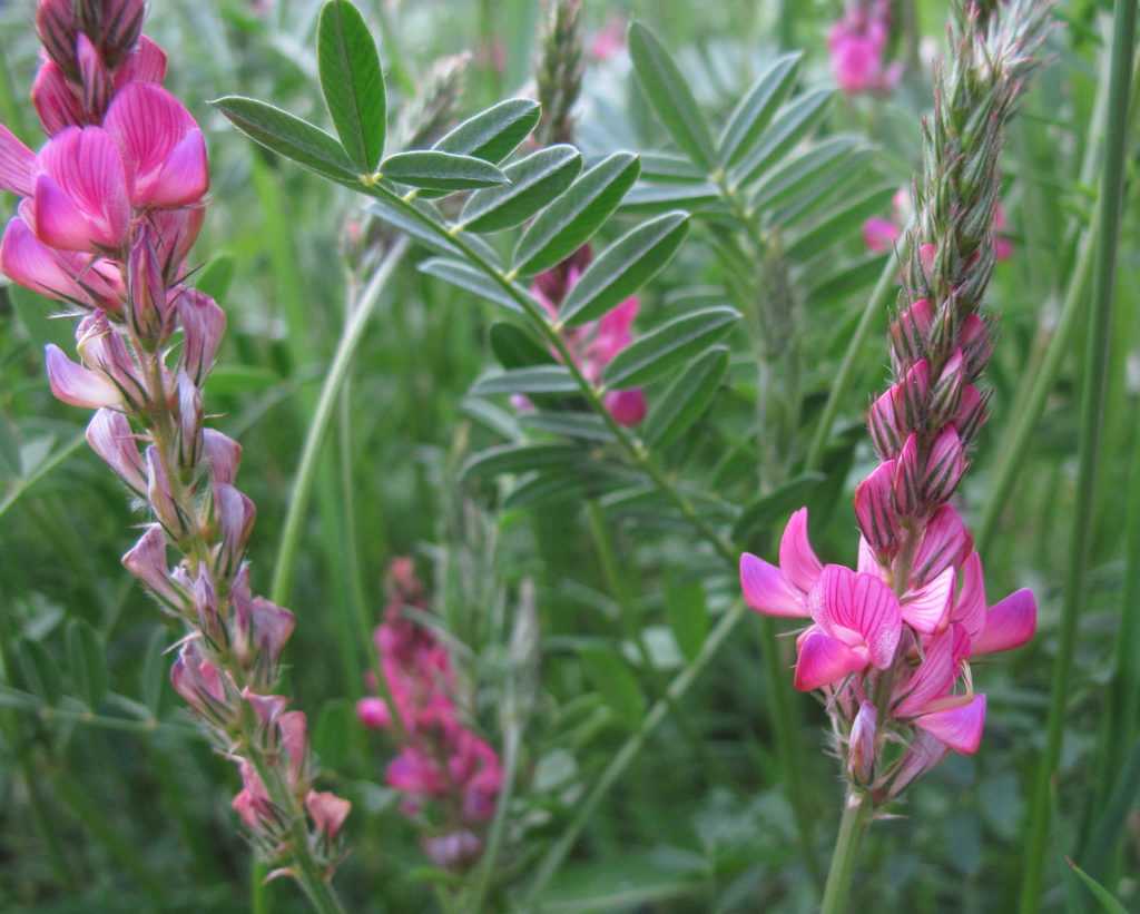 В простонародье этот многолетник называется «заячий горох» из-за нестандартного внешнего вида. Непритязательный эспарцет – истинный кладезь целебных веществ и отменный медонос.