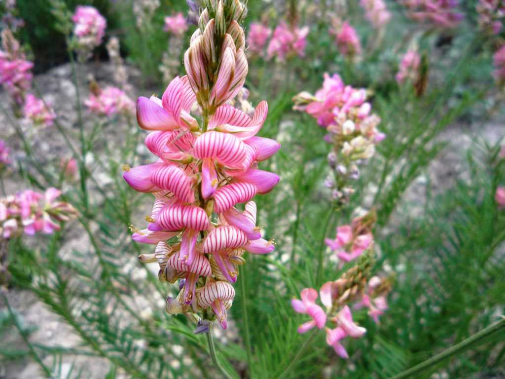 Эспарцет песчаный (другие названия – «заячий горох», «воронец», «красный буркун», «белые васильки», «дрок красный» и др.) – многолетник, в высоту достигающий 80 см.