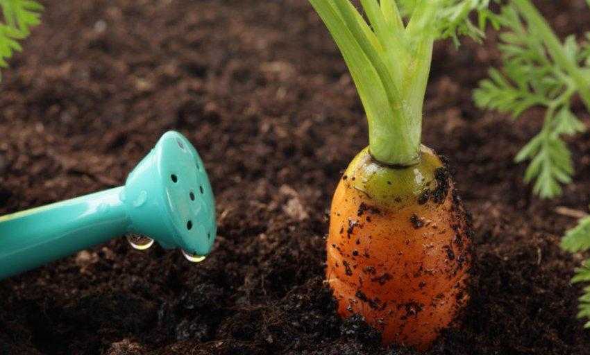 Морковь растет на умеренно дренированных и плодородных грунтах, нуждается в постоянном поливе, но неплохо переносит засуху. Временные изменения влажности, колебания температур не вызывают существенных изменений. Нужно ли поливать морковь после посева? Единственный критерий ухода, который должен оставаться неизменным – это освещение. Морковь относится к светолюбивым культурам и увядает в притененных метах.