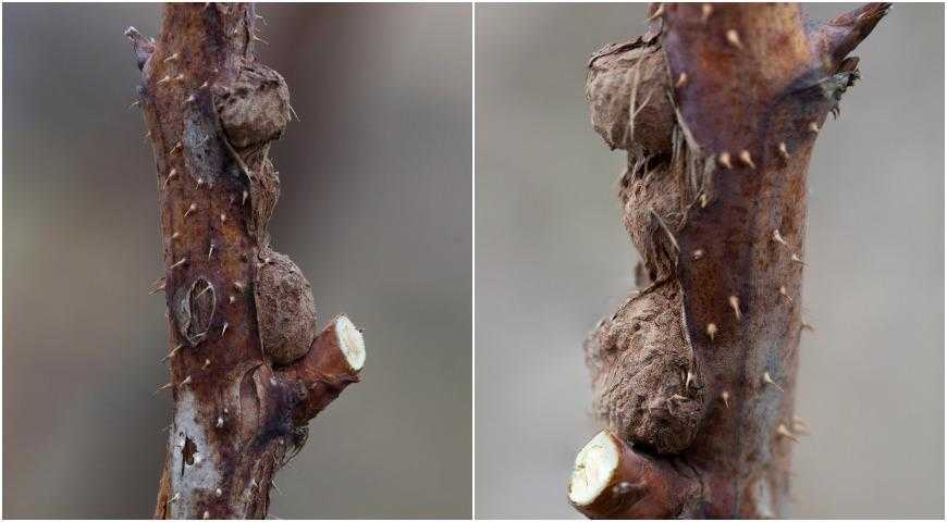Малинная галлица повреждает побеги растения. В результате на ветках появляются своеобразные вздутия. Именно в этих вздутиях вредитель зимует в фазе личинок.