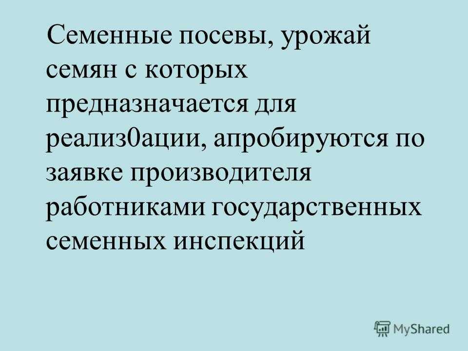 Семенные посевы, урожай семян с которых предназначается для реализ0ации, апробируются по заявке производителя работниками государственных семенных инспекций