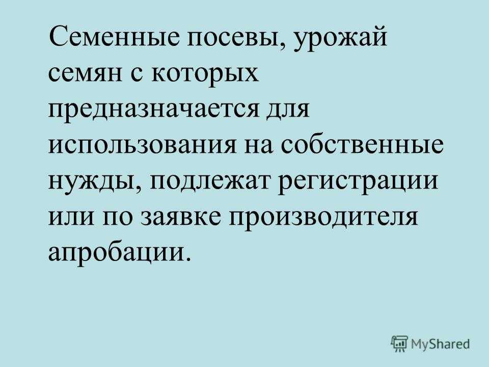 Семенные посевы, урожай семян с которых предназначается для использования на собственные нужды, подлежат регистрации или по заявке производителя апробации.